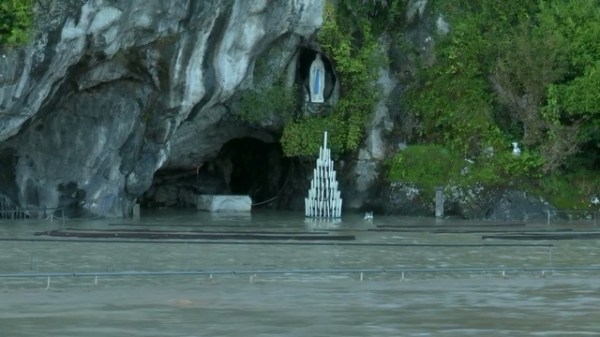 Le Gave de Pau subit une crue importante ce samedi. La grotte sacrée de Lourdes se retrouve sous les eaux ! https://vk.com/video647796984_456245736