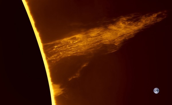 30 Août 2022La Terre , ici à l'échelle , est minuscule face à une proéminence solaire , un jet énorme et lumineux de plasma SolaireUne proéminence solaire typique peut couvrir des milliers de kilomètres